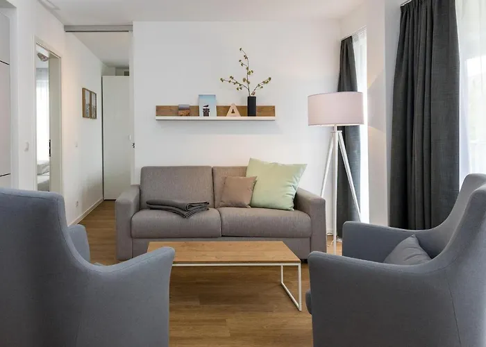Dieses Apartment verfügt über einer Küche, wo alle notwendigen Annehmlichkeiten, darunter eine Mikrowelle, eine Kaffee-/Teemaschine und ein Kühlschrank, vorhanden sind. Die Gäste der Unterkunft können den Komfort von Ausstattung zur Kaffee- & Teezubereitung genießen. Das Restaurant Peter Pan mit deutschen Gerichten befindet sich circa 5 Gehminuten vom Apartment entfernt. Die Bushaltestelle Am Hafen liegt relativ nah an diesem 58 m^2 großen Apartment.
